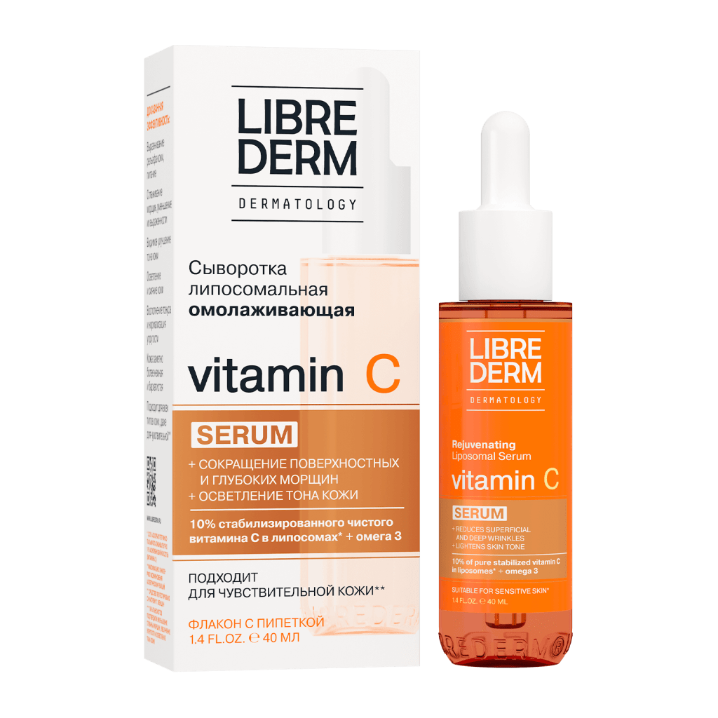 Based on this powerhouse ingredient, LIBREDERM experts have created a Liposomal Rejuvenating Vitamin C Serum that combines advanced scientific research with innovation. The serum helps skin regain smoothness, vitality, and firmness. Its silky, light‑oil texture absorbs quickly without stickiness or shine. Suitable for all skin types, including sensitive, it can be used as a daily treatment or as part of an intensive skincare course.